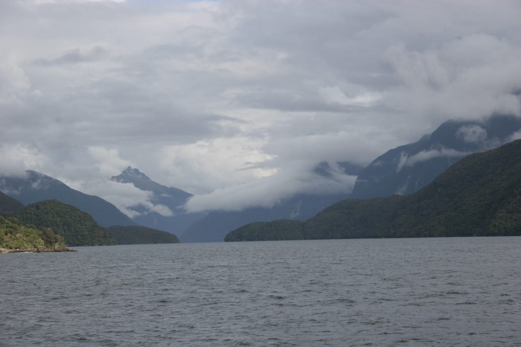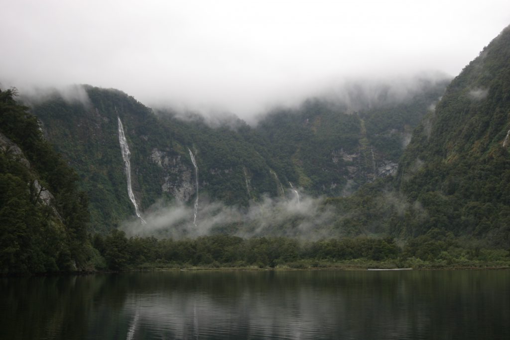 Vooral toen de schipper de motoren had stilgezet, viel de absolute stilte hier helemaal op. Het water dat zich via verschillende watervalletjes uit de bergen naar beneden stortte, was goed te horen. De natuur hier blijft vreselijk mooi en rustgevend. Eigenlijk was het veel te snel weer voorbij voor ons gevoel en legden we al weer aan, om in de bus te gaan.Over Wilmott pass terug en het laatste stukje met de boot terug over lake Manapouri.