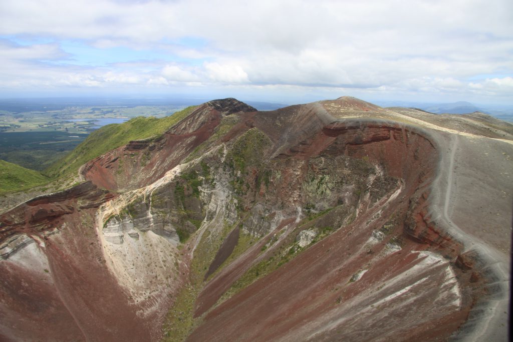 Voor we in Rotorua terugkeren vliegen we eerst nog over Mt.Tarawera en the Blue & Green Lake.