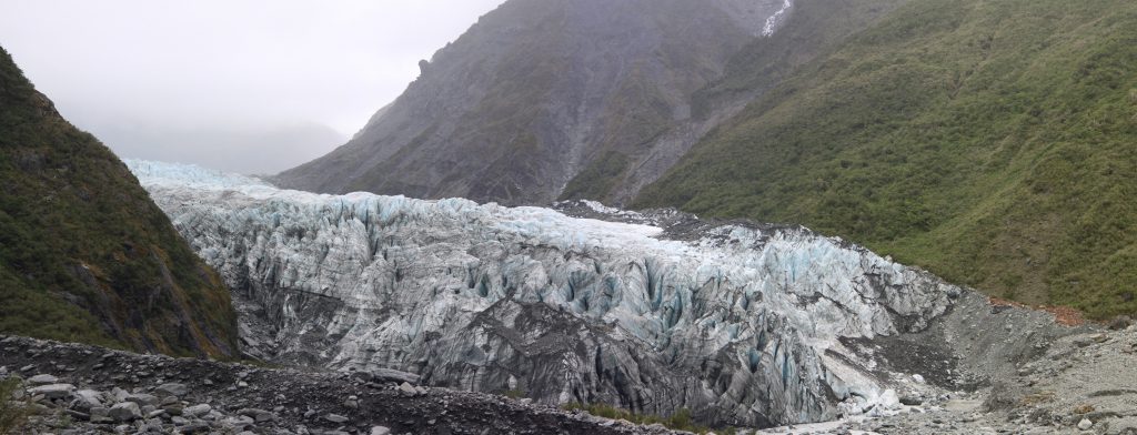 Vanmorgen was het wat somber en buiten bleek het ook was fris te zijn. Na het ontbijt, we waren wat vroeger opgestaan, gingen we richting Fox Glacier.