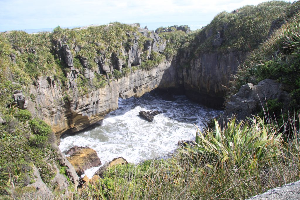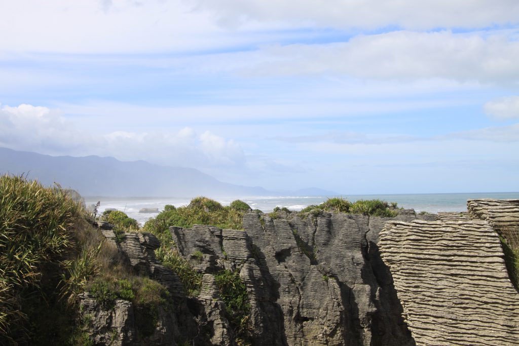 Onderweg zijn we opnieuw gestopt bij Pancake Rocks. Het is geweldig om te zien hoe wild de zee kan zijn en hoe hij hier op de kust slaat. Jammer genoeg waren was het geen hoogtij, anders hadden we de blow-hole beter kunnen zien. De rotsformaties hier blijven toch nog steeds imponerend.
