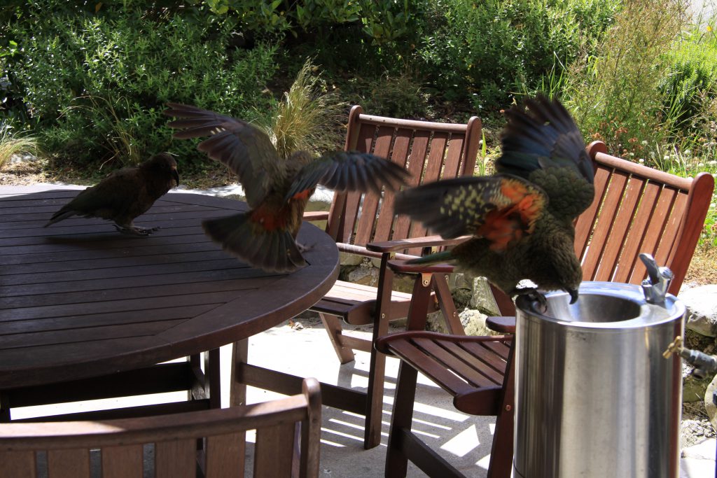 We hebben genoten van de Kea’s die daar rondliepen. Ze zijn vreselijk brutaal, als je even niet oplet pakken ze zo je boterham, pie of zitten aan je drankje !