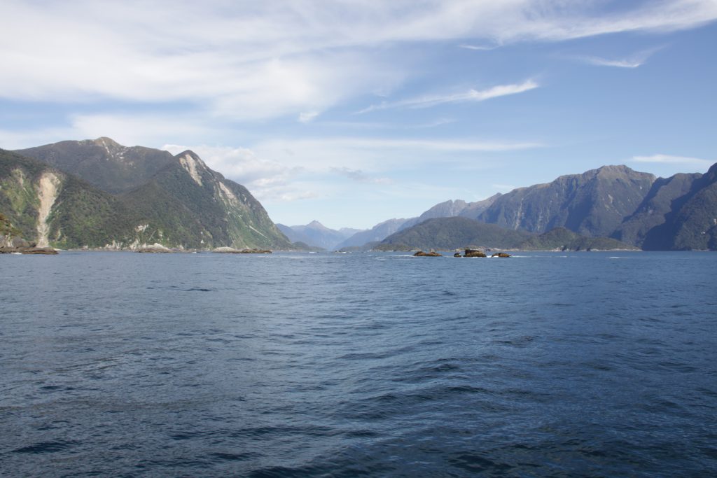 Met de Fjordland Navigator gaan we de Doubtful Sound in. De schitterende natuur blijft ons imponeren en blijft de moeite waard.We zien helaas nog geen dolfijnen, maar wel weer zeehondjes.
