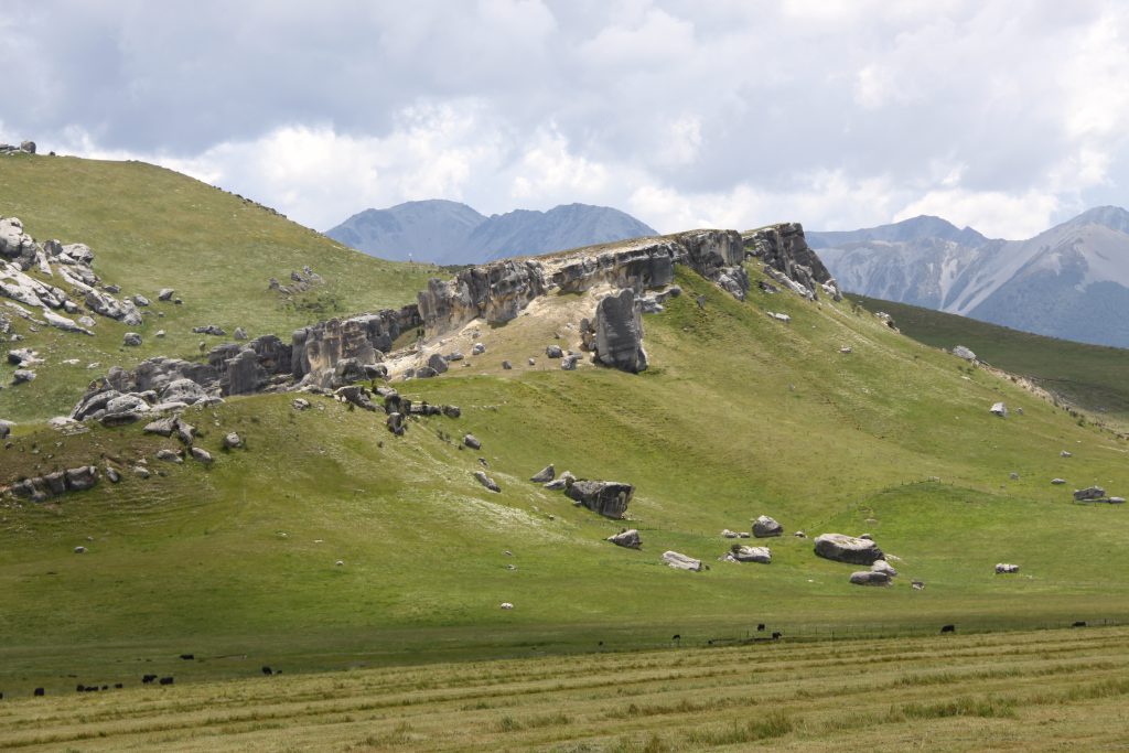 Voor de bergen bij Arthur’s Pass komen we bij Castle Hill.