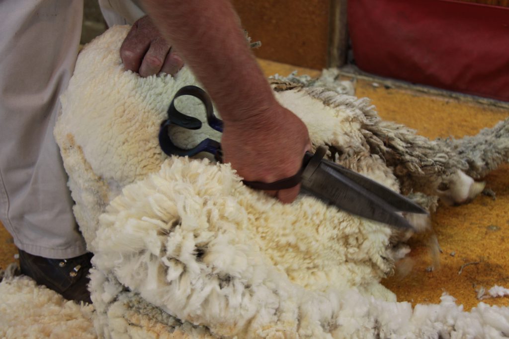 Het scheren van de schapen, Merino, wordt door hem op de ouderwetse manier gedaan met een scherpe handschaar. Ook het verschil tussen normale en Merino wol is enorm. Merinowol heeft aparte eigenschappen. Jeukt niet, warmt en koelt en krimpt niet.