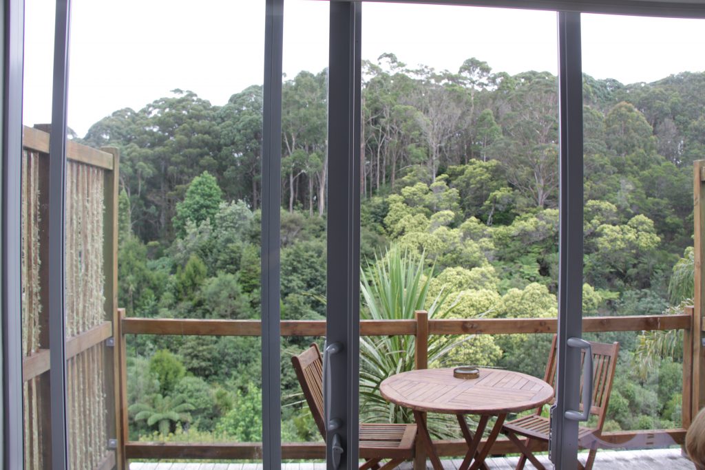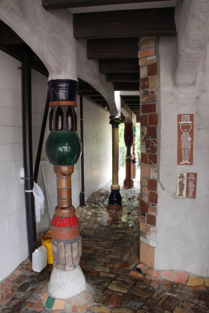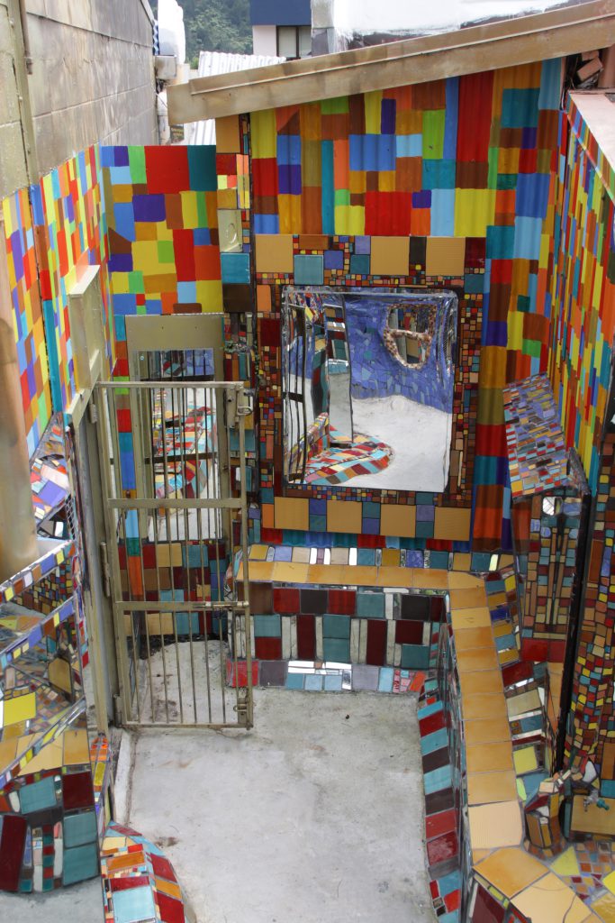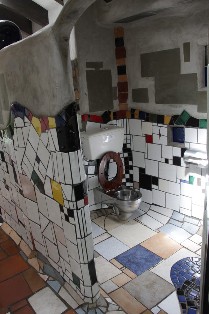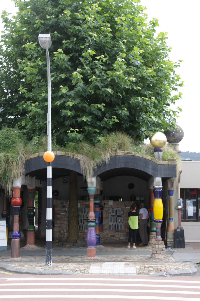 Onderweg komen we het bord Kawakawa tegen, toen wisten we ineens dat daar de beroemde toiletten van Hundertwasser zijn.