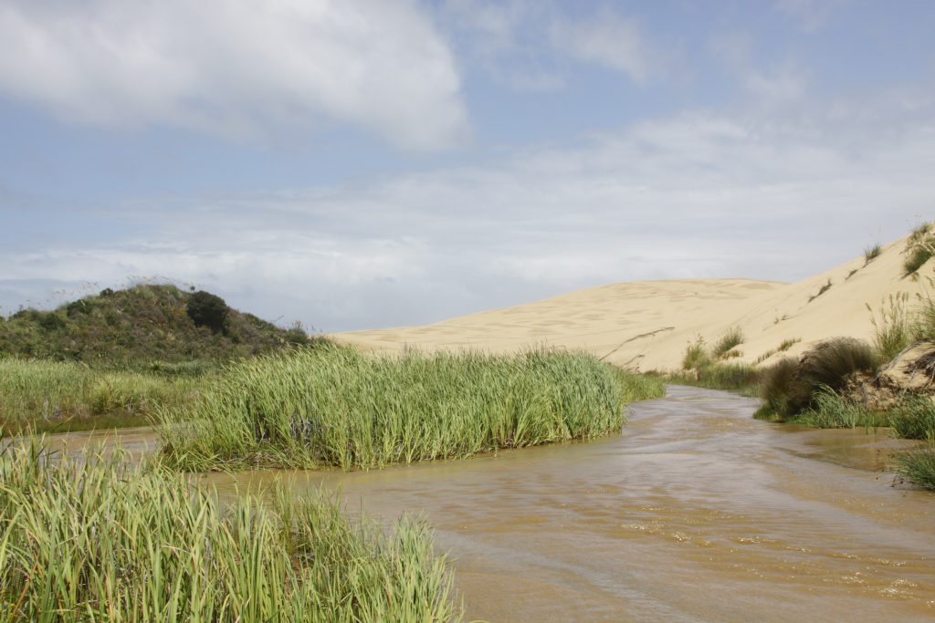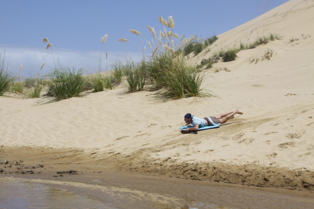 Heel apart eigenlijk dat er kleine stroompjes langs zandduinen lopen. Het water daarin is echt lekker warm. Degenen die gingen sandboarden kwamen soms best snel naar beneden en velen kwamen zelfs nog in het water terecht.